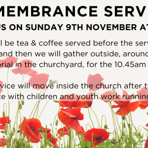 Sunday 9th November @ 10.45am | Remembrance Day service | No need to book, just turn up! |